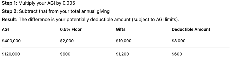 1. A New 0.5% AGI Floor for Itemized Charitable Deductions